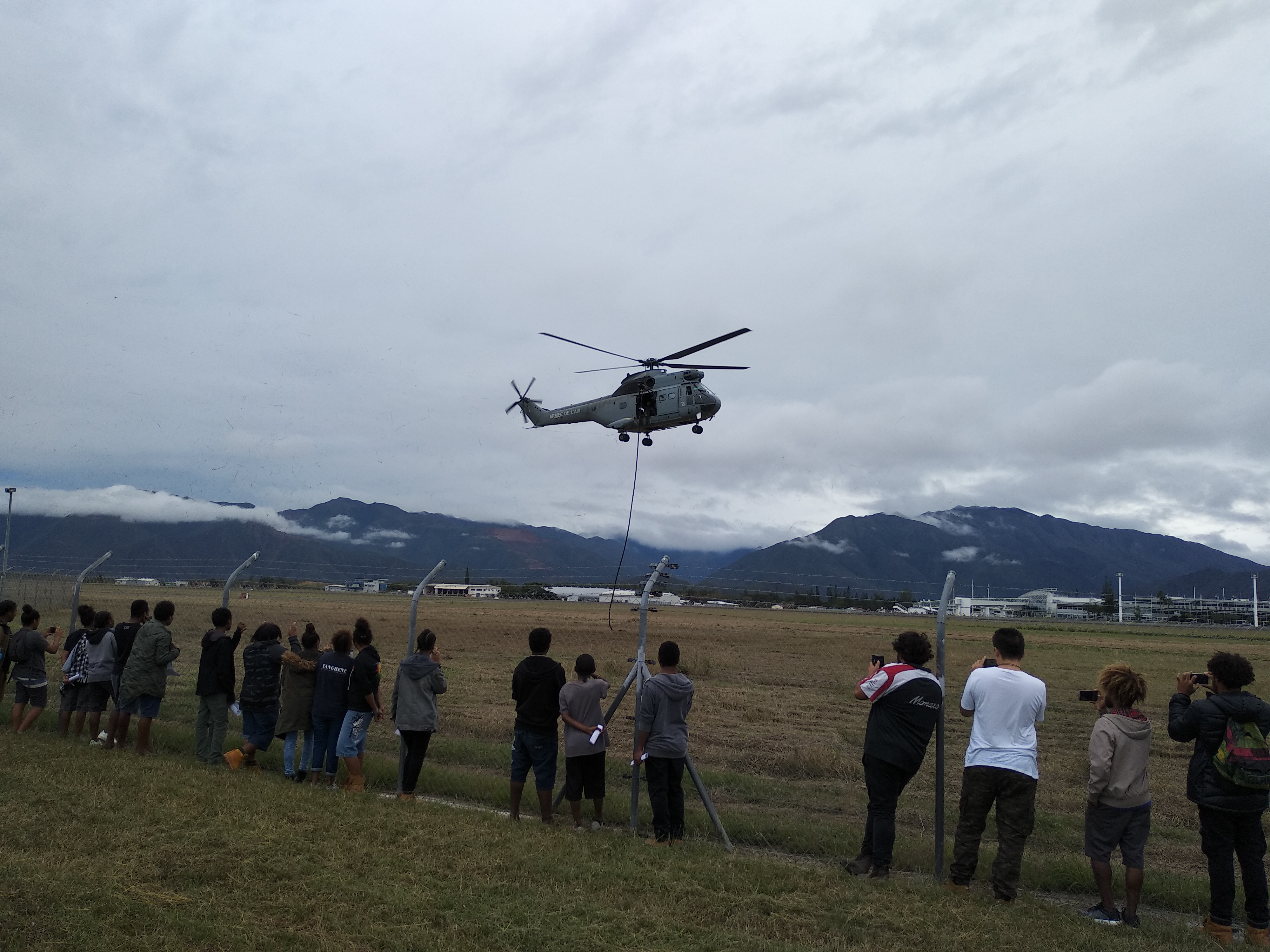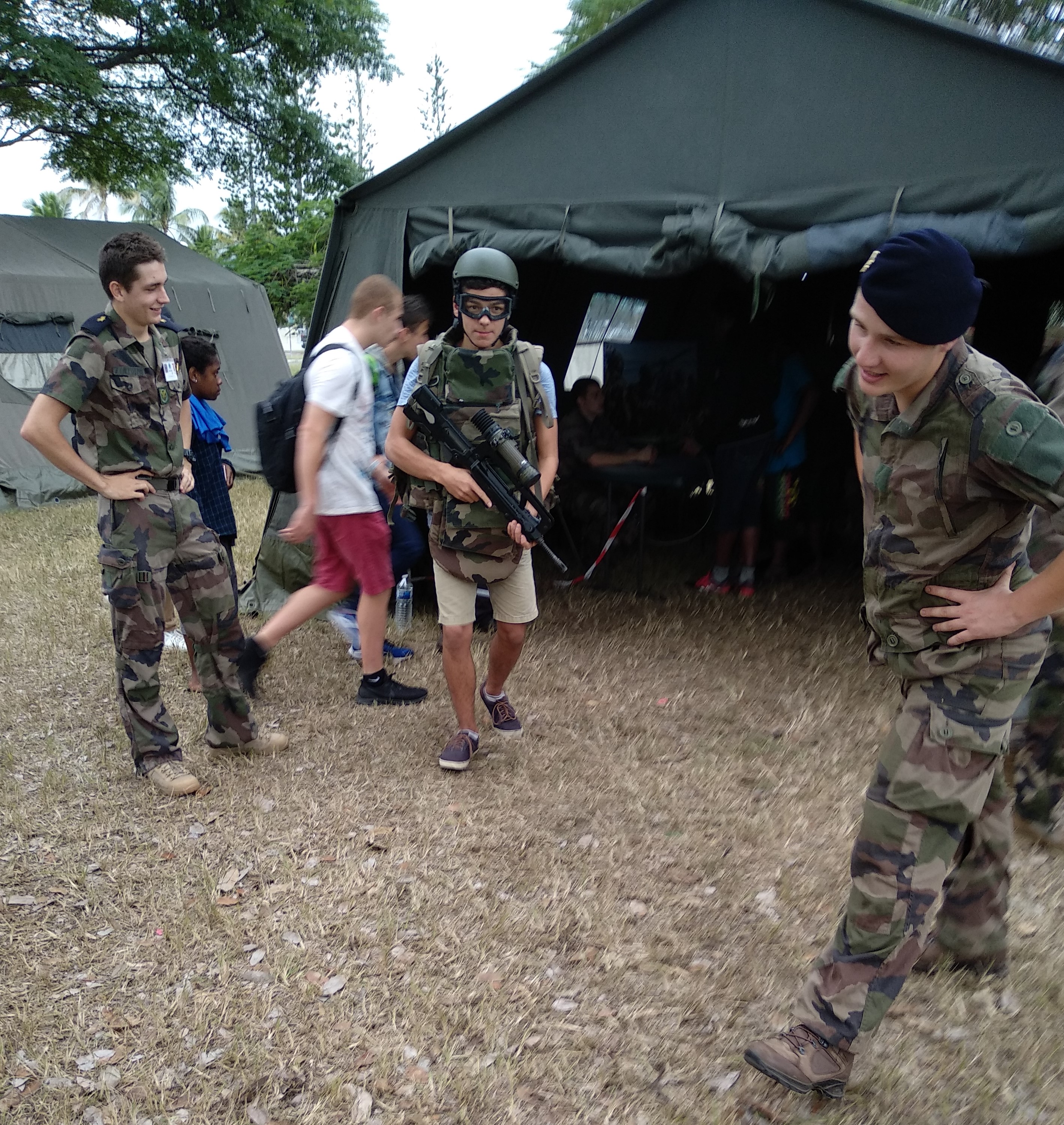 Nous avons pu également assister à des exercices réels tout au long de la journée : parachutage de militaires du régiment d’infanterie de marine du Pacifique (RIMAP), aérocordage du GIGN à partir d’un hélicoptère Puma, intervention des forces de protection sur un individu suspect exfiltré par hélitreuillage sur Puma, évacuation d’un blessé, etc. Un quizz était à notre disposition pour gagner différents lots, dont un baptême de l’air....Qui sera l’heureux élu ?!!! Suspense ! Hélas, aucun quizz n’était organisé pour gagner un picnic pour les élèves qui avaient oublié le leur !